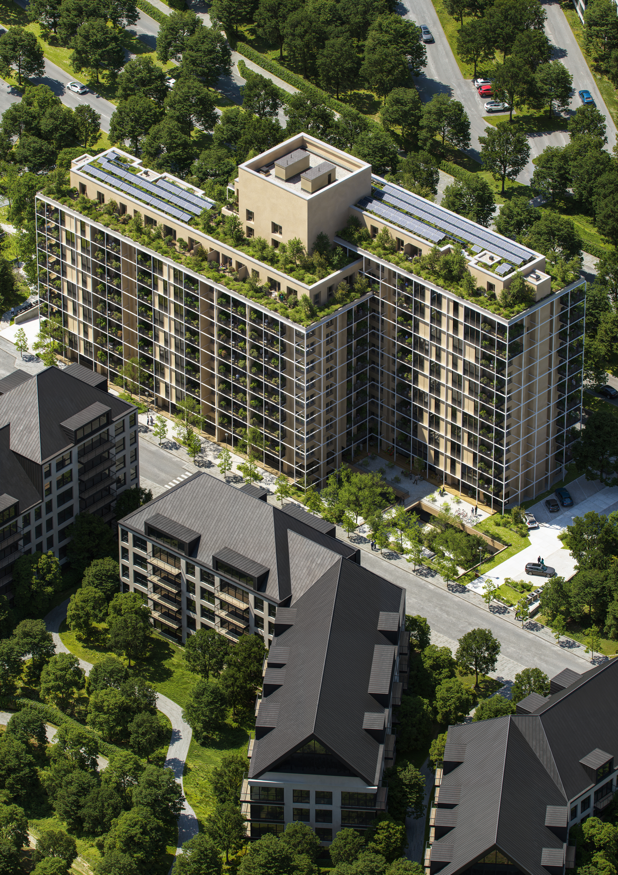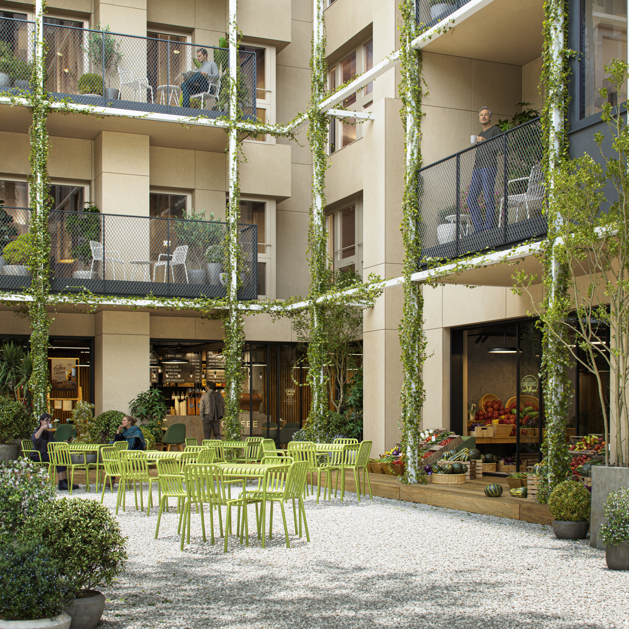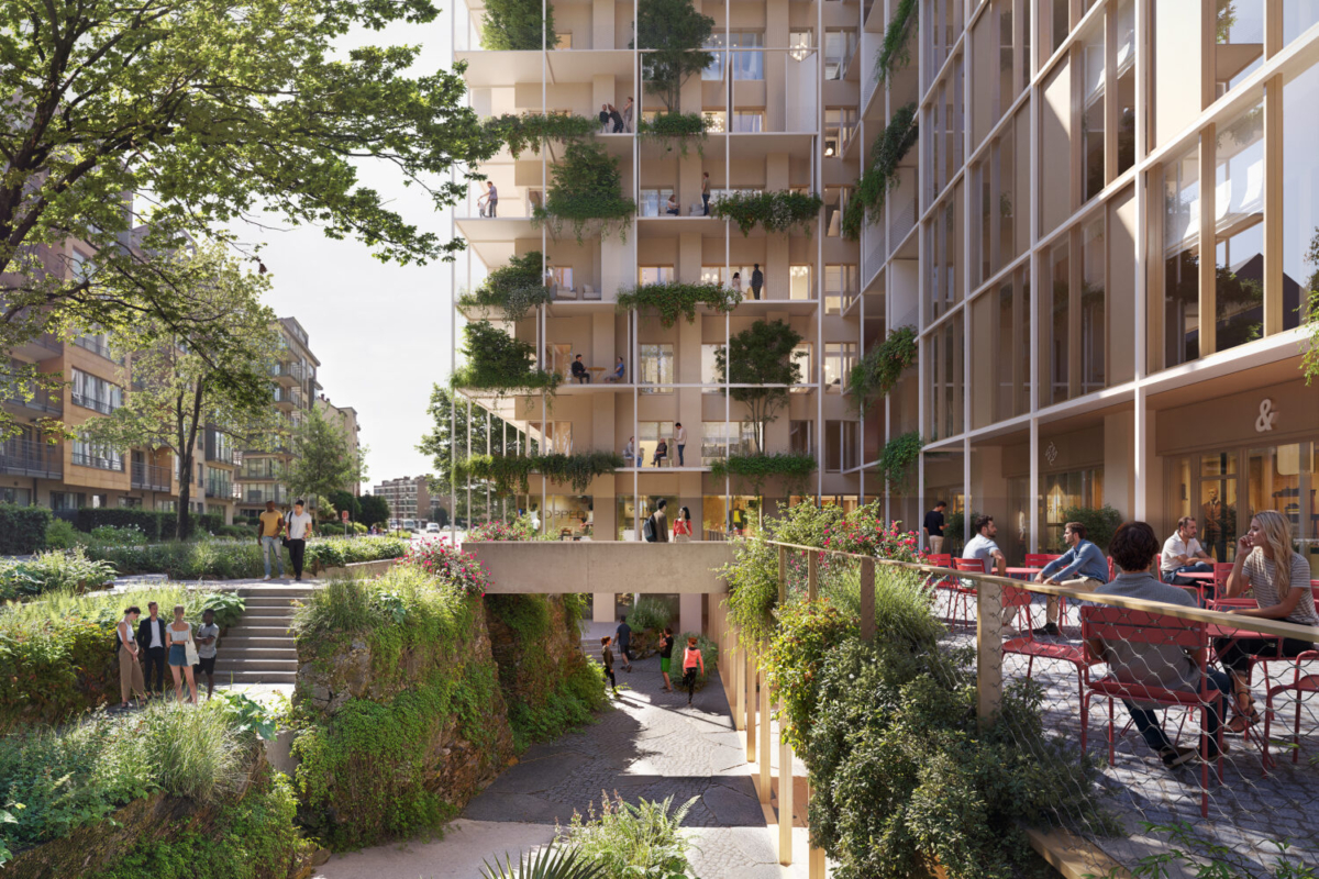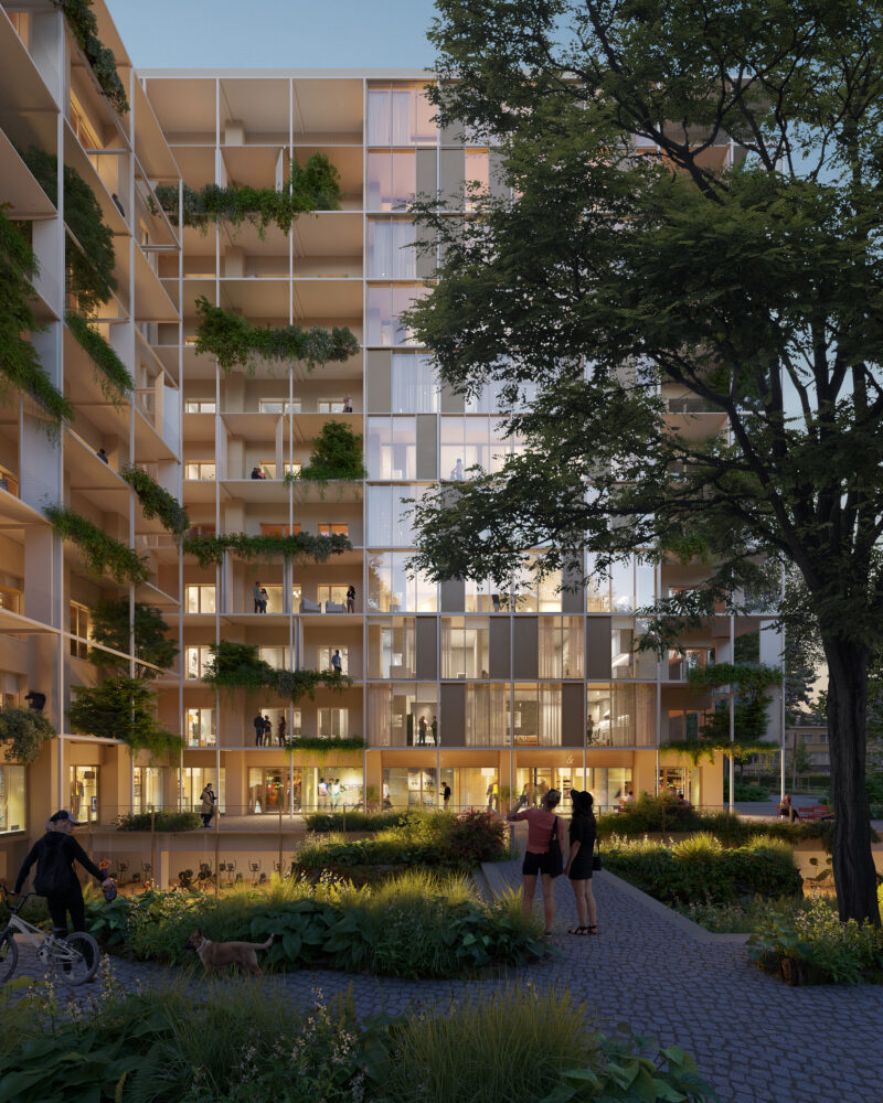 We didn’t demolish the existing structure; we adapted it. The original concrete structure was preserved and reconfigured to support a new residential program: 177 housing units, each with private outdoor space, natural light, and cross-ventilation. On the ground floor, the building opens up to the neighborhood with commercial functions, patios, and new entrances connecting Rue de Genève to Avenue du Pentathlon. The monotonous roofline is replaced by an inhabited crown: a prefabricated timber structure that adds loggias, terraces, and planted zones while respecting the original grid. The new envelope follows a 3.60-meter structural rhythm and integrates solar-responsive components. There is no gas, no air conditioning; just thermal mass, passive house strategies, and future-proof systems. This is not about preservation. It’s a transformation with intent, turning structural rigidity into urban and social potential.